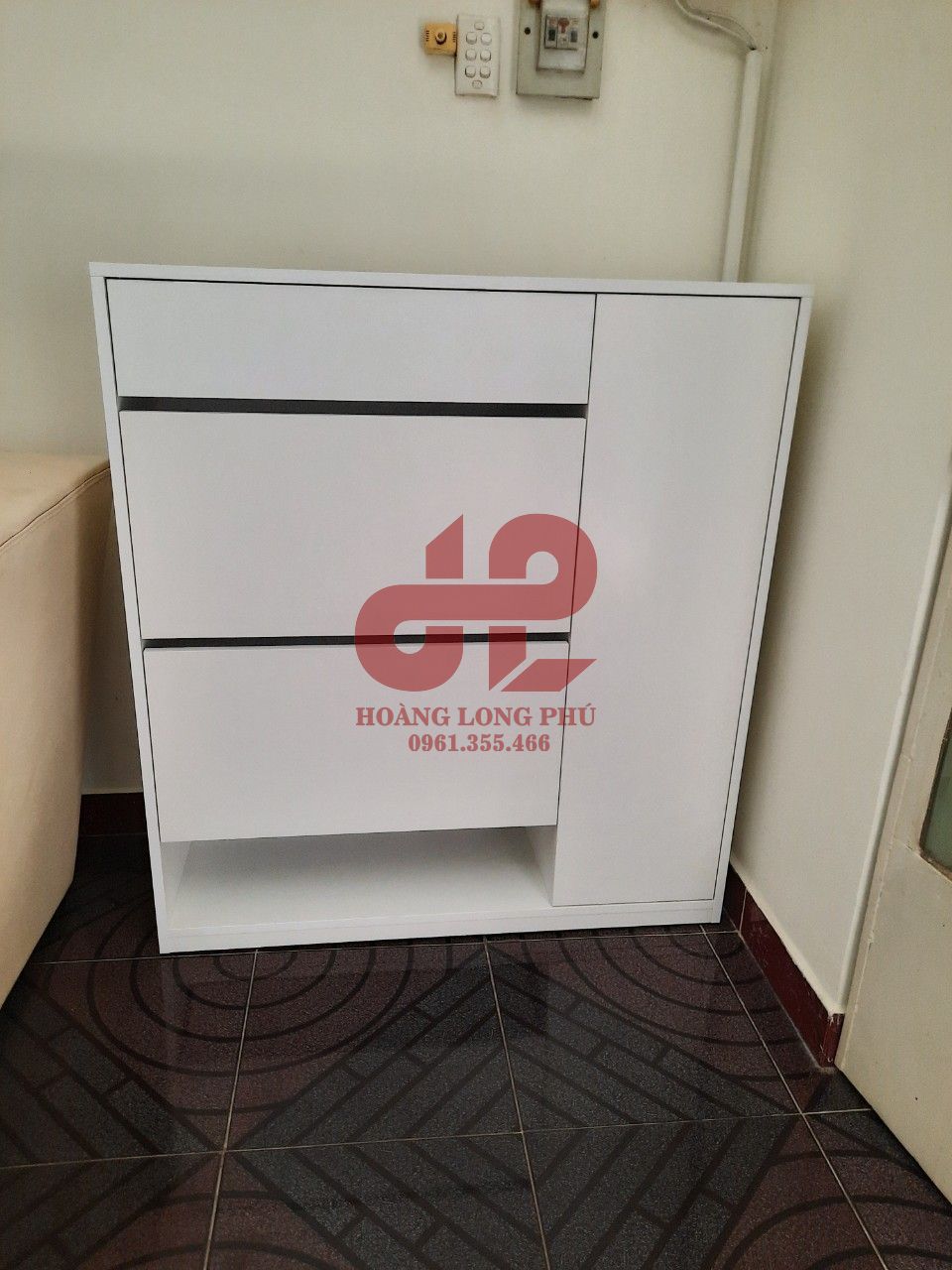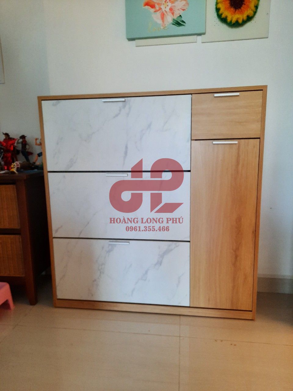 Hiện nay có một số đơn vị lấy hình ảnh sản phẩm của chúng tôi bán, để nhận được sản phẩm giống hình và chất lượng tốt nhất, mong các bạn hãy tìm đến đúng đơn vị trực tiếp sản xuất tủ giày: Nội thất Hoàng Long Phú.
