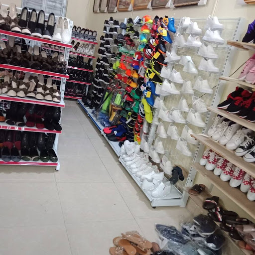 Loại kệ để giày dép cho shop này là sự kết hợp giữa kệ siêu thị tôn liền và kệ siêu thị lưng lưới.